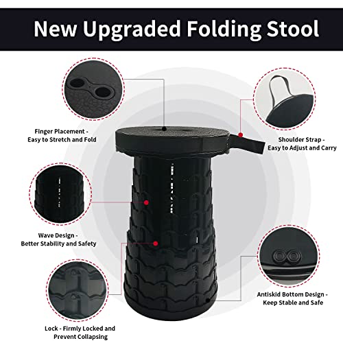 BOFA Eco Tableware Sgabello Pieghevole Campeggio Carico Massimo 180 Kg, Nero Sgabello Telescopico Portatile Retrattile Pieghevole Sgabello per Cucina Interna Bagno Pesca Escursionismo Barbecue