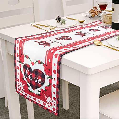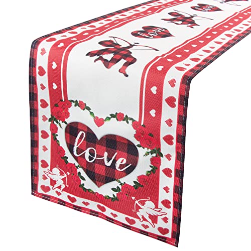 BOFUNX Runner Tavola 33 * 178 cm Runner Rosso Valentine Tovaglia Runner da Tavola Cupido con Amore Cuore per Valentine Decorazione