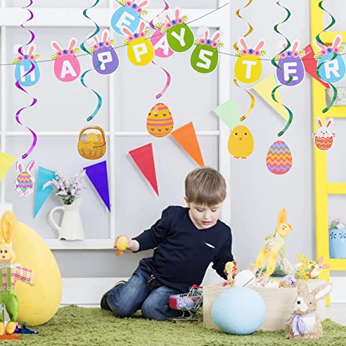 BOFUNX Striscione Pasqua Banner di Pasqua Decorazioni a Spirale Pasqua Cake Topper Decorazione Torta Pasqua per Festa Pasqua Bambini