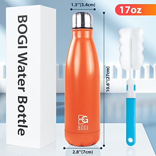 BOGI 500ml doppia parete in acciaio inox coibentato bottiglia di acqua, mantiene il vostro Bevanda calda & fredda Perfetto per campeggio di sport esterni escursionismo escursioni in bicicletta(Orange)