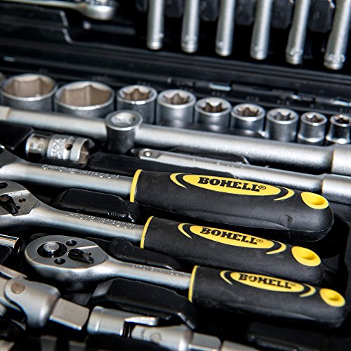 Bohell SH215 - Valigetta con set di chiavi a bussola e altre attrezzi, 215 pezzi