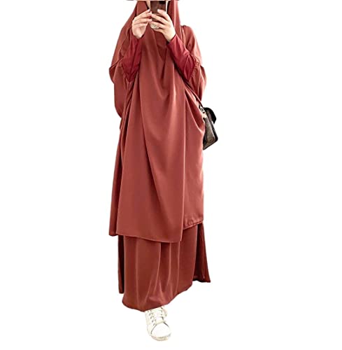 Bohen Abito da Preghiera Musulmano di Un Pezzo per le Donne Abito Abaya Islamico Medio Oriente Dubai Turchia Maxi Abaya Kaftan con Abito Hijab a Figura Intera Rosa, Taglia unica