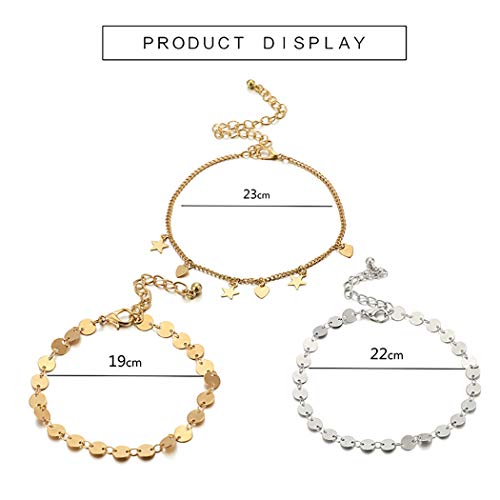Bohend Boho Stella calzerotto Oro lustrino Caviglia Braccialetto Multilayer Cavigliere Spiaggia Catene per i piedi Accessori per gioielli per donne e ragazze