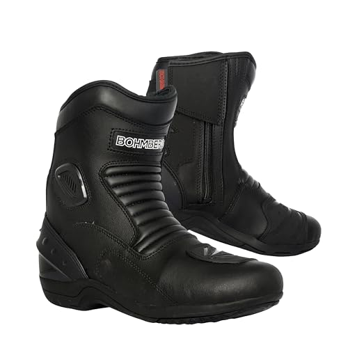 Bohmberg Ronin - Stivali da moto da uomo, in vera pelle, resistenti all'acqua con Airvents e protezioni rinforzate, Nero, 41 EU