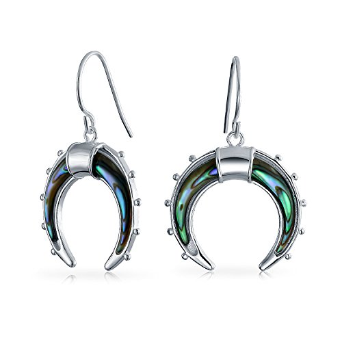 Boho Celestial Blu Verde Arcobaleno Iridescente Tribal Half Crescent Moon Abalone Shell Penzoloni Orecchini per le donne per adolescente .925 Sterling Argento Pesce Filo Gancio