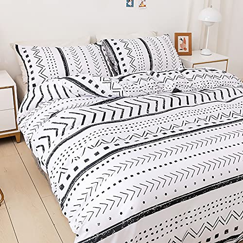 Boho Completo Copripiumino Matrimoniale, Sacca Copri Piumone con Cerniera Biancheria da Letto Bohémien Geometrico Reversibile, 1 x Copripiumino 230x260 cm e 2 x Federe 50x90 cm - Nero Bianco