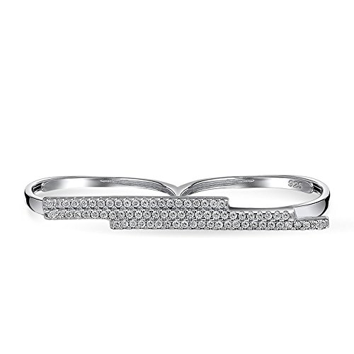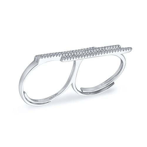 Boho Cubic Zirconia Fashion Geometric CZ Pave Double Sideway Bar Two Finger Ring For Teen For Women 925 Sterling Silver