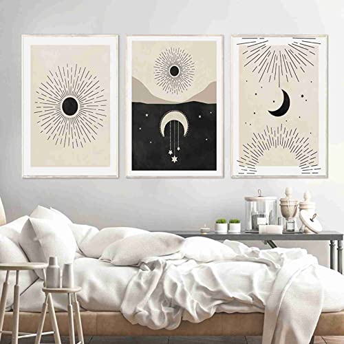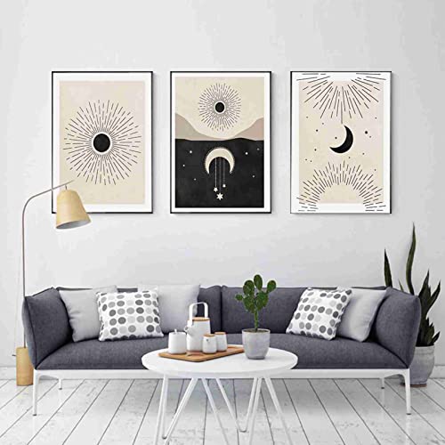 Boho Malvagio Occhio Poster Luna Stelle Celeste Arte Stampa Metà Secolo Parete Arte Tela Quadri Sacro Geometria Parete Quadro Camera da letto Decorazioni 40x60 cm x 3 Senza cornice