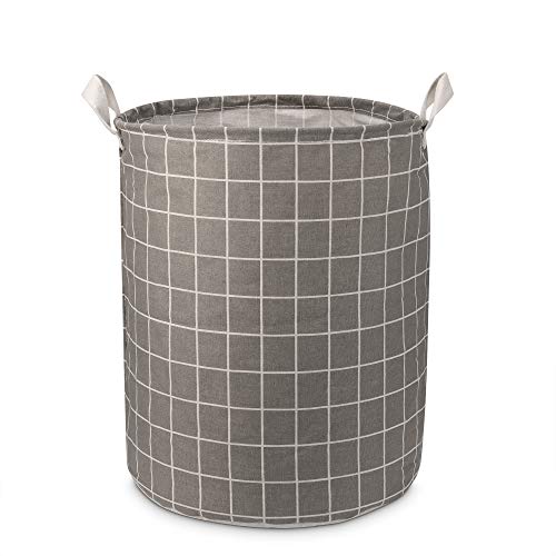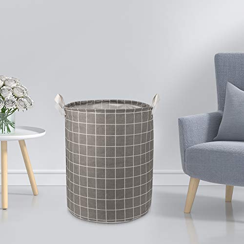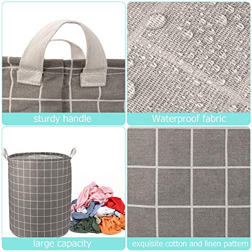 Boic Cesto Portabiancheria Pieghevole, Grande Cesto Biancheria Sporca, Rotonda Cotone Lino Cesta Portabiancheria Sporca Salvaspazio, Cesto Portaoggetti con Fodera Impermeabile, Griglia Grigia
