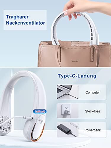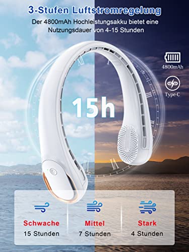 BOIROS Ventilatore da Collo, Ventilatore Portatile da Collo, Ventilatore da collo con Batteria da 4800mAh, Silenzioso, con Flusso d'aria a 360°, 3 Velocità, Ventilatore da Collo Senza Pale
