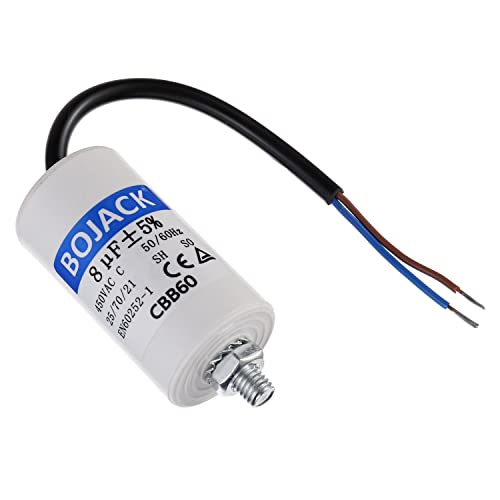 BOJACK 8uF 450V Condensatore di avviamento del motore 34x63mm avviamento per motore Con cavo del condensatore M8 con dado Adatto per alla maggior parte dei motori