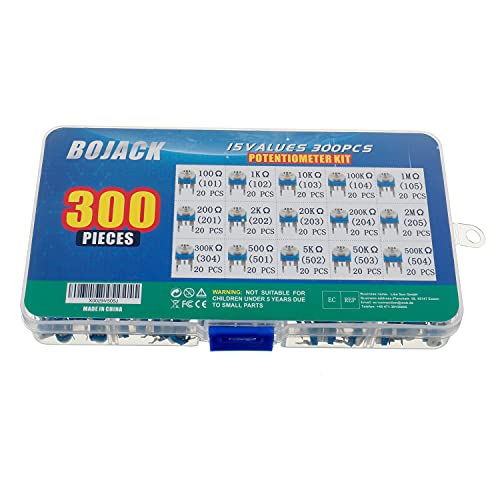 BOJACK 15 Valori 300 pezzi 100 Ohm- 2M Ohm Resistore variabile 6mm Potenziometri e Trimmer Assortment Kit packag in una scatola di plastica trasparente