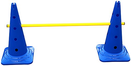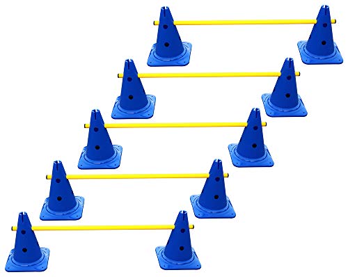 Boje Sport- Set di 5 Ostacoli per l'allenamento di coordinazione, Allenamento di Resistenza per Bambini e Sport di Squadra - 10x Coni Multiuso 50 cm, Colore: Blu / 5X Pali 100 cm, Colore: Giallo