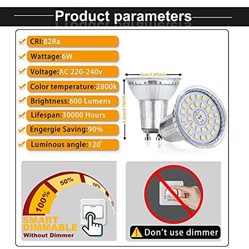 RISPARMIO ENERGETICO ✔: Queste faretti gu10 di alta qualità con LED SMD 30 * 2835 sono perfette per sostituire alogeni GU10 54W, luce calda 2800K con oltre 600 lumen, resa cromatica elevata 82Ra, classe di efficienza energetica A++, estremamente efficienti e durano fino a 30.000 ore.
