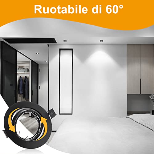 Bojim 10x Faretti Led da Incasso Per Cartongesso Nero, Cornici da Incasso Per Faretto, 30° Orientabile Telaio di montaggio a soffitto con portalampada GU10, IP20 Cornice Per Led 68-80 mm 230V