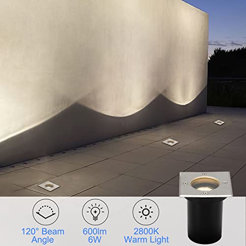 Bojim Faretto a Pavimento da Esterno Piazza, IP 67 Faretto da Giardino ad Incasso Impermeabile, GU10 Lampada da Incasso a Terra 6W Luce Bianca Calda 2800K, Luci a LED per Giardino Sentieri