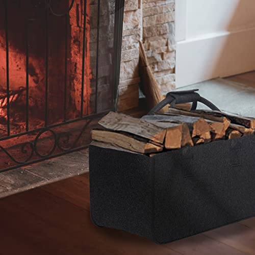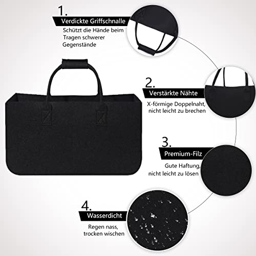 BOJLY Borsa in Feltro Borsa per Legna da Ardere, 2 pcs 31L Borsa per Legna da Ardere in Feltro, Pieghevole Cestino in Legno per Legna da Ardere, Borsa per la Spesa Grande Shopper in Feltro, Nero