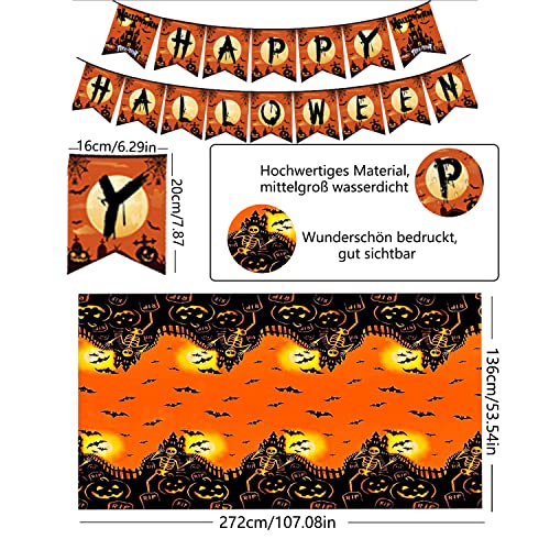 Set di Decorazioni di Halloween - Incluso 1 striscione Happy Halloween, 1 tovaglia di Halloween. La dimensione della bandiera è: 16 * 20 cm / 6,3 * 7,9 pollici, la dimensione della tovaglia è: 2,72 * 1,36 m / 107 * 54 pollici