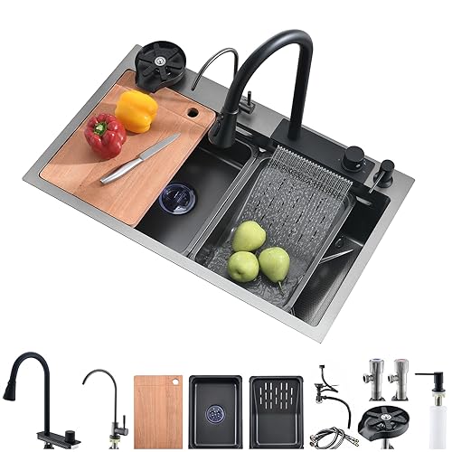 【Pacchetto Integrato】Il pacchetto include:lavandino,rubinetto cucina lavello cascata, rubinetto estraibile con tu