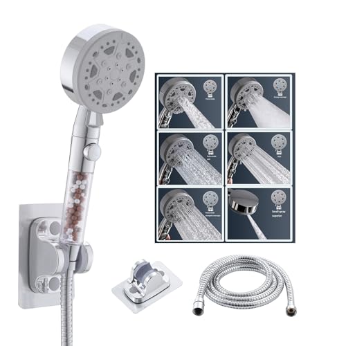 Bokaiya Soffione Doccia con Filtro,Anticalcare 6 Tipi di Getto, Soffione Doccia Alta Pressione Risparmio Idrico,Doccino Pressurizzato, con 1.8M Tubo, Supporto, SPA, Cromato