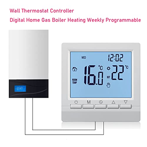BOKIOESDE Termostato con retroilluminazione Regolatore di temperatura di riscaldamento Misuratore Smart LCD Regolatore di grandi dimensioni Caldaia a Multifunzionale per parete
