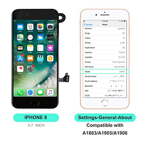 【Compatibile con iPhone 8】- Questa sostituzione dello schermo LCD funziona solo con un iPhone 8 (4,7 pollici). Controlla il retro del telefono se non conosci il modello di telefono. Puoi cercare il tuo modello di telefono su Google per assicurarti che il tuo telefono sia iPhone 8 o meno. Riconosci il tuo modello di iPhone prima dell'acquisto.