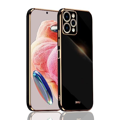 BOKYAS per Cover Xiaomi Redmi 12 4G/Redmi 12 5G di Placcatura Minimalista, Custodia in Silicone Brillantini Anti-Caduta Elegante Ultra Sottile per Donne, Nero