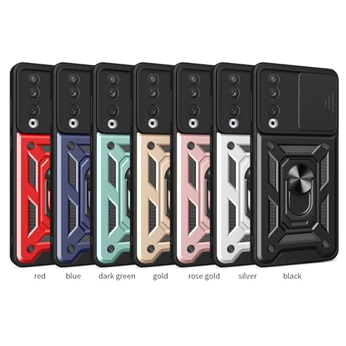 BOKYAS per Custodia Honor 90 con Custodia per Fotocamera Scorrevole e Supporto per Anello [Cover Anti-Caduta Compatibile con Supporto Magnetico per Auto], Blu