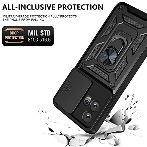 BOKYAS per Custodia Motorola Moto G72 con Custodia per Fotocamera Scorrevole e Supporto per Anello [Cover Anti-Caduta Compatibile con Supporto Magnetico per Auto], Nero