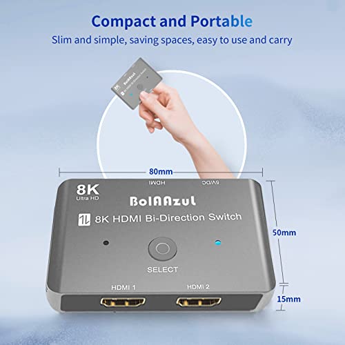 Interruttore bidirezionale HDMI 2.1: il box splitter HDMI BolAAzuL 8K 2X1/1X2 collega due sorgenti HDMI a un display HDMI (come interruttore HDMI) o collega una sorgente HDMI per passare da due display HDMI (come splitter HDMI).