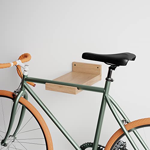 Boladeta - Supporto per bicicletta da parete in legno - Appendiabiti in legno porta biciclette con ripiano per appendere il casco vicino alla bici