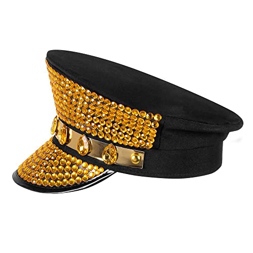 . Il berretto nero con visiera è decorato con una varietà di gemme belle e accattivanti.