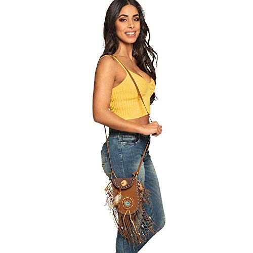 Boland 44543 - Borsa Ibiza, dimensioni 19 x 13,5 cm, marrone, borsa a tracolla con tracolla, piume, perline, hippie, Flower Power, Carnevale, Fastnacht, festa a tema
