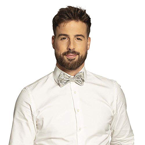 Boland 53111 - Papillon glitter, argento, misura circa 13 cm, elastico, versione stretta, lucido, costume, carnevale, halloween, festa in maschera, festa a tema
