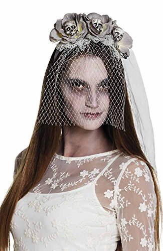 Boland- Tiara Sposa Cadavere Zombie Skulls con Velo, Bianco, taglia unica, 72127