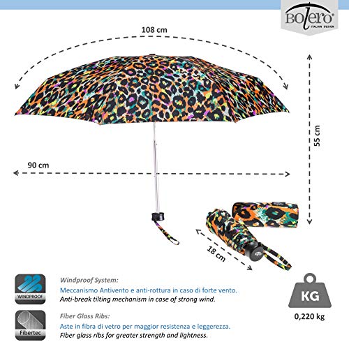 BOLERO OMBRELLI - Ombrello Mini da Pioggia Pieghevole Antivento di alta qualità - Apertura manuale - Tessuto Pongee 190T - Portatile da Borsa e Tascabile - Uomo Donna