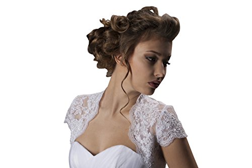 Giacca corta Bolero da sposa in pizzo. Elegante interfaccia. Disponibile in bianco e avorio. Taglie da S a XL
