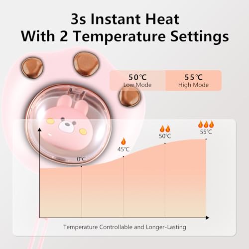 ☀️ 【Calore istantaneo】Con la tecnologia di riscaldamento rapido, questi scalda mani tascabili offrono due impostazioni di temperatura - 50 e 55 gradi - che si riscaldano rapidamente in soli 3 secondi. Questa funzione di riscaldamento immediato fornisce calore istantaneo a mani e piedi. Più veloce dell'acqua bollente per la borsa dell'acqua calda;
