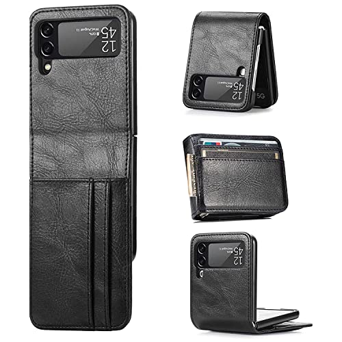 Boleyi - Custodia a libro per Samsung Galaxy Z Flip 3, in pelle sintetica di alta qualità, antiscivolo, morbida al tatto, con scomparti per carte di credito, supporto per Samsung Galaxy Z Flip 3, Nero