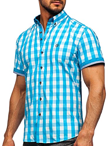 BOLF Uomo Camicia a Manica Corte Camicetta a Scacchi Elegante Quotidiana Tempo Libero Festa Classica Basic Slim Fit Casual Style 4508 Azzurro XL [2B2]