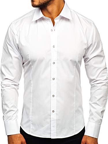 BOLF Uomo Camicia a Manica Lunga Camicetta Formale Elegante Quotidiana Tempo Libero Festa Classica Basic Slim Fit Casual Style 1703 Bianca L [2B2]