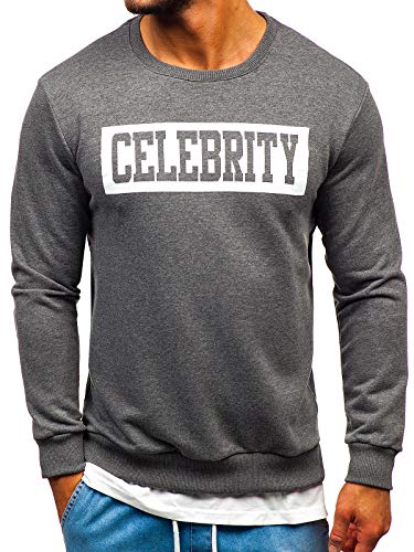 BOLF Uomo Felpa Senza Cappuccio con Stampa Maglia Manica Lunga Tempo Libero Sport Fitness Outdoor Basic Casual Style 11115 Grafite M [1A1]