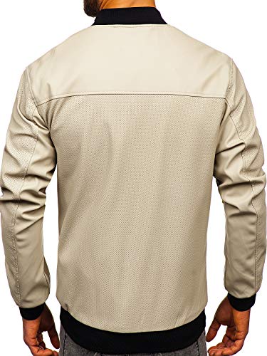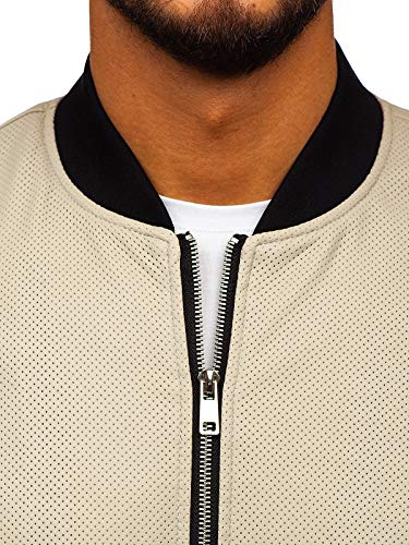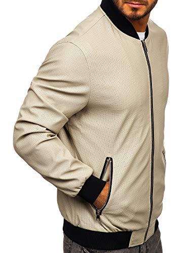 BOLF Uomo Giacca in pelle collo alla coreana Ecopelle Biker Invernale mezza stagione Trapuntata da aviatore Bomber Cerniera lampo Cerniera Casual Style 6124 Ecru XXL [4D4]