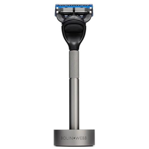 Bolin Webb Generazione rasoio e supporto in grafite, manico in alluminio progettato con precisione dotato di cartuccia di rasoio a 5 lame, lussuoso set da barba per uomo