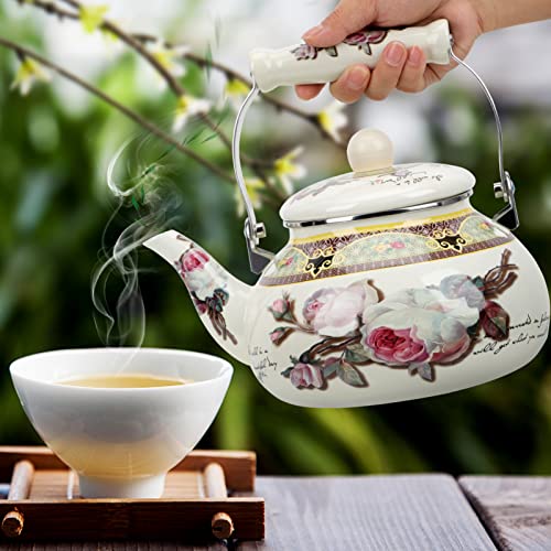 【Teiera Smaltata】Capacità di riempimento: 2,5 l. Puoi facilmente riscaldare 2000 ml senza acqua bollente. Teiera smaltata, per mantenere calda e servita.