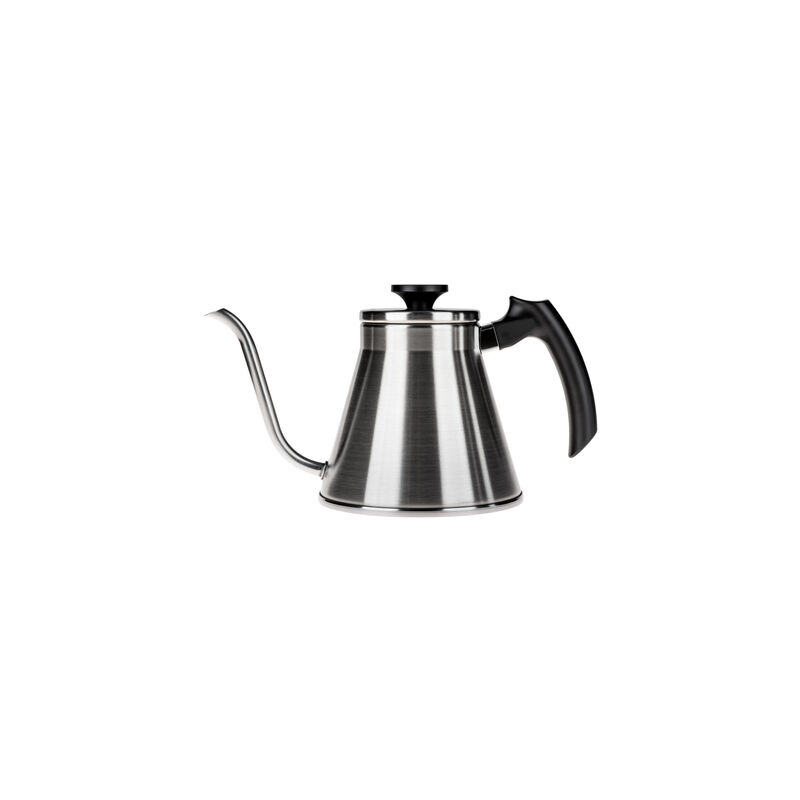 Il collo profilato offre il pieno controllo del flusso d'acqua. Grazie a questo, puoi influenzare il ritmo e il luogo in cui dirigi l'acqua. Il tutto è completato da un design minimalista e realizzato con materiali di alta qualità. Il bollitore è interamente realizzato in acciaio inossidabile, con finitura nera opaca. La comoda maniglia è stata progettata in modo da poter essere impugnata in due modi. Un ulteriore vantaggio è che può essere utilizzato su tutti i tipi di piani cottura. Capacità totale: 1,2 l Capacità utile: 800 ml Il diametro totale del fondo è di 14,4 cm, e il diametro della superficie di contatto con il terreno è di 12,5 cm.