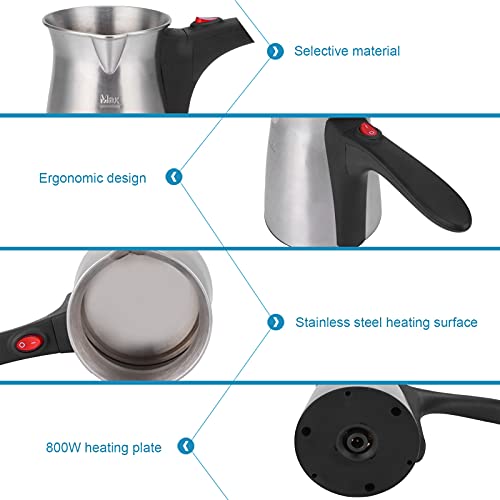 【4 TAZZE DI ESPRESSO】 Questa caffettiera turca ha una capacità di 500 ml ed eroga 4 tazze piene di espresso. Preparato con la nostra caffettiera, il vostro caffè sarà extra forte, ricco e aromatico e vi consigliamo di prepararlo con 16 g di caffè finemente macinato e acqua per un gusto ottimale.