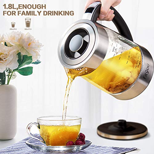 Bollitore Elettrico, Fityou 1.8L | 2200W Bollitore in Vetro con filtro rimovibile, Impostazione della temperatura(40 ℃ -100 ℃), 24 ore di conservazione funzione calda, illuminazione a LED, BPA Free