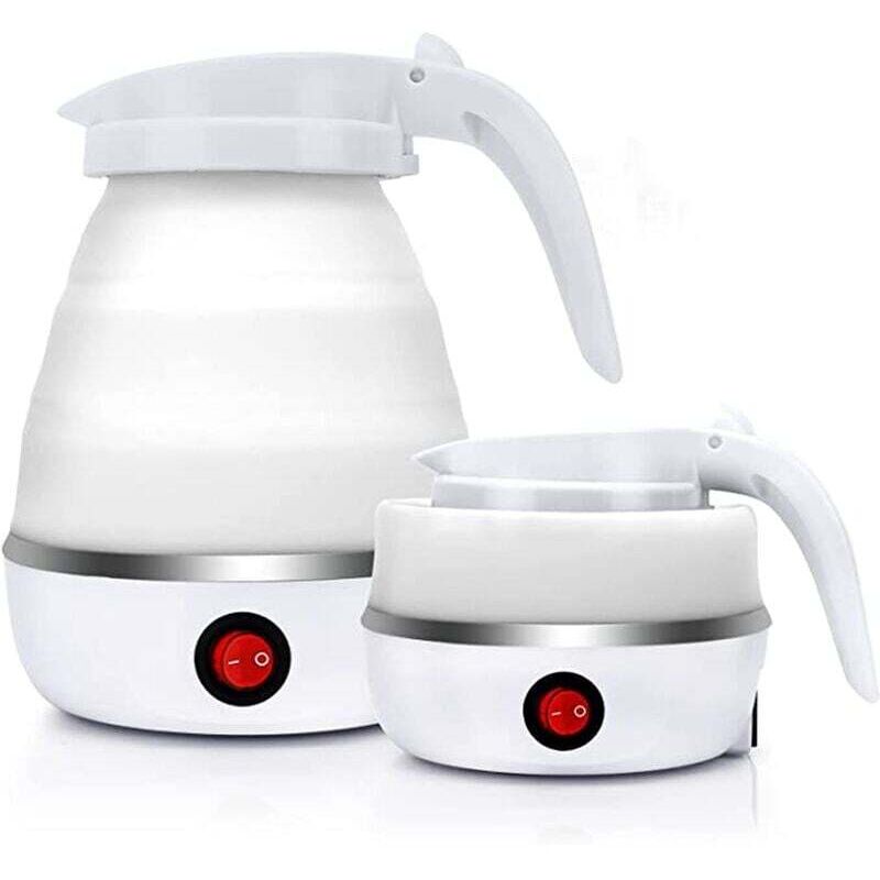 Bottiglia d'acqua pieghevole: la mini bottiglia d'acqua pieghevole misura solo 3,8 pollici quando è piegata e 6,7 pollici quando è aperta. Il cavo della spina del bollitore è staccabile e può essere rimosso in qualsiasi momento quando non viene utilizzato. Il nostro bollitore elettrico ha una capacità di 600 ml e il design pieghevole rende il nostro bollitore elettrico molto comodo e leggero quando si viaggia, il che consente di risparmiare molto spazio durante l'imballaggio. Ideale per piccole cucine. Materiale per uso alimentare: la bottiglia d'acqua pieghevole è realizzata in silicone per uso alimentare, atossico, insapore e resistente alle alte temperature. Base bollitore in acciaio inox 304, corpo in silicone resistente al calore e manico in plastica. Il bollitore da campeggio è completamente pieghevole per una facile conservazione e portabilità e si espande facilmente fino a 0,6 l, consentendoti di goderti l'acqua calda ovunque. Fai bollire l'acqua ovunque, ovunque: con un