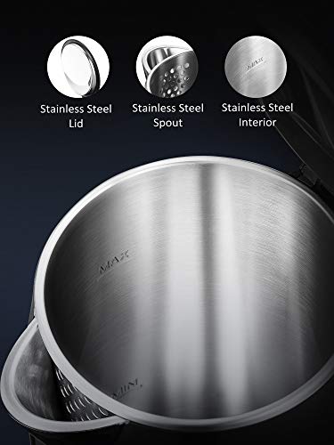 Materiali sani: l'interno, il filtro e il coperchio del bollitore sono realizzati in acciaio inossidabile alimentare 304 per mantenere l'acqua sana, che è sicura, ecologica e sicura da usare. Tutte le superfici che vengono a contatto con l'acqua sono realizzate con materiali sicuri per gli alimenti.